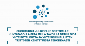 The Social Entrepreneurship Development in the Baltic Sea region -projektissa on julkaistu suosituksia julkiselle sektorille kuntatasolla siitä millä tavoilla stimuloida yhteisötaloutta ja yhteiskunnallisten yritysten kehittymistä tehokkaasti.