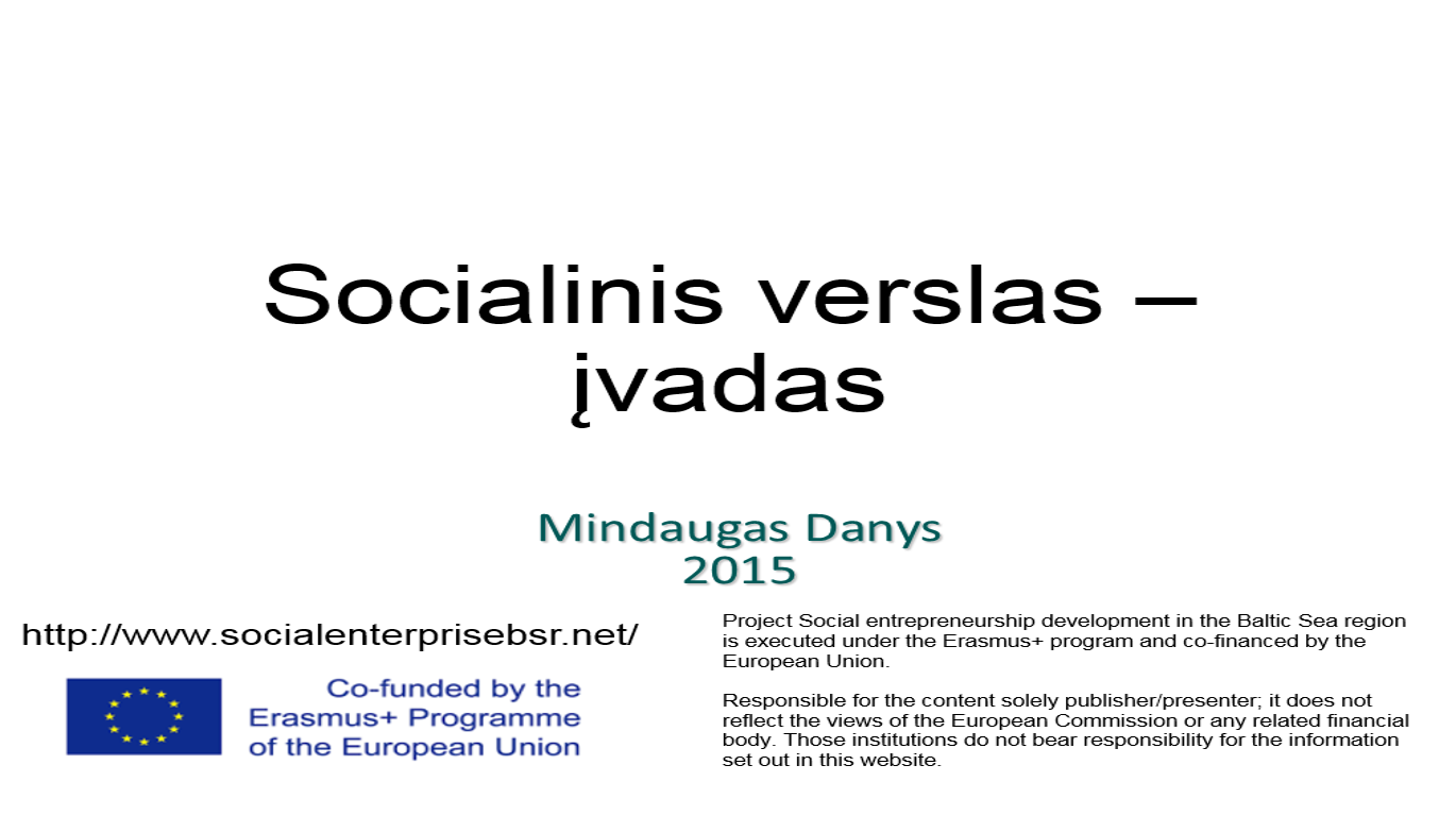 Educational Materials | Lithuanian Video paskaita apie socialinį verslą April 1, 2016January 28, 2018 Siūlome jūsų dėmesiui 15 min video pranešimą apie socialinį verslą: