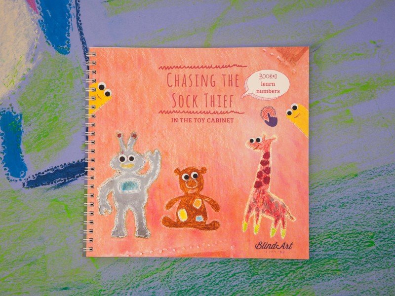 The success story of “BlindArt” was marked by creations of unique book for children, including impaired ones. “Chasing the Sock Thief” is a story book in 4 parts, which consists of storyline created by members of the Blind Society of Latvia and illustrations made by blind and visually impaired children from Strasdumuiža’s boarding school. Some may say this is impossible, but creativity and effort is always a solution. Children, using previously prepared stencils, punctured little holes around the stencils on a paper with some sharper tools. Then, using the sense of touch, filled marked shapes with colors and created amazing ilustrations. The book was published in two languages, Latvian and English, for children with no disabilities, as well as for blind ones, as the book was customized for them as well.