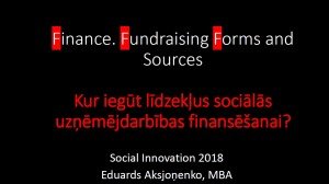 Prezentācija “Kur iegūt līdzekļus sociālās uzņēmējdarbības finansēšanai”