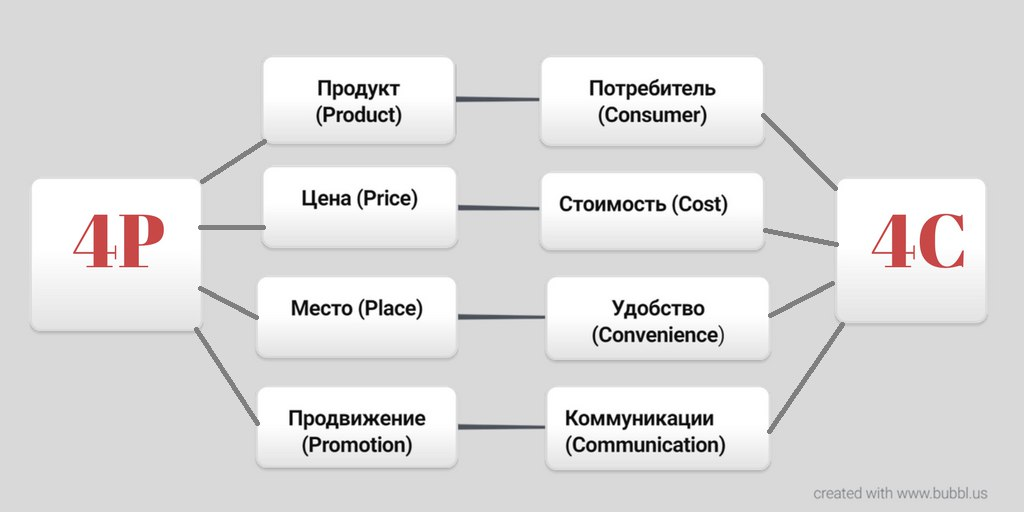 Место / Опыт. Потенциальные покупатели должны иметь доступ к продукту. Доставка продукта от производителя клиенту является частью услуг, связанных с продуктом. Фактически, это одна из функций продукта. Неважно, кто поставляет продукт – производитель или продавец – клиент видит в нем весь опыт взаимодействия с компанией. Сегодня он включает в себя онлайн-и оффлайн-магазины, платежные услуги, поддержку клиентов и т. д. Поскольку продукты становятся все более похожими по спецификациям и даже дизайну, пользовательский опыт создает эмоциональные отношения между брендом (компанией) и клиентом.