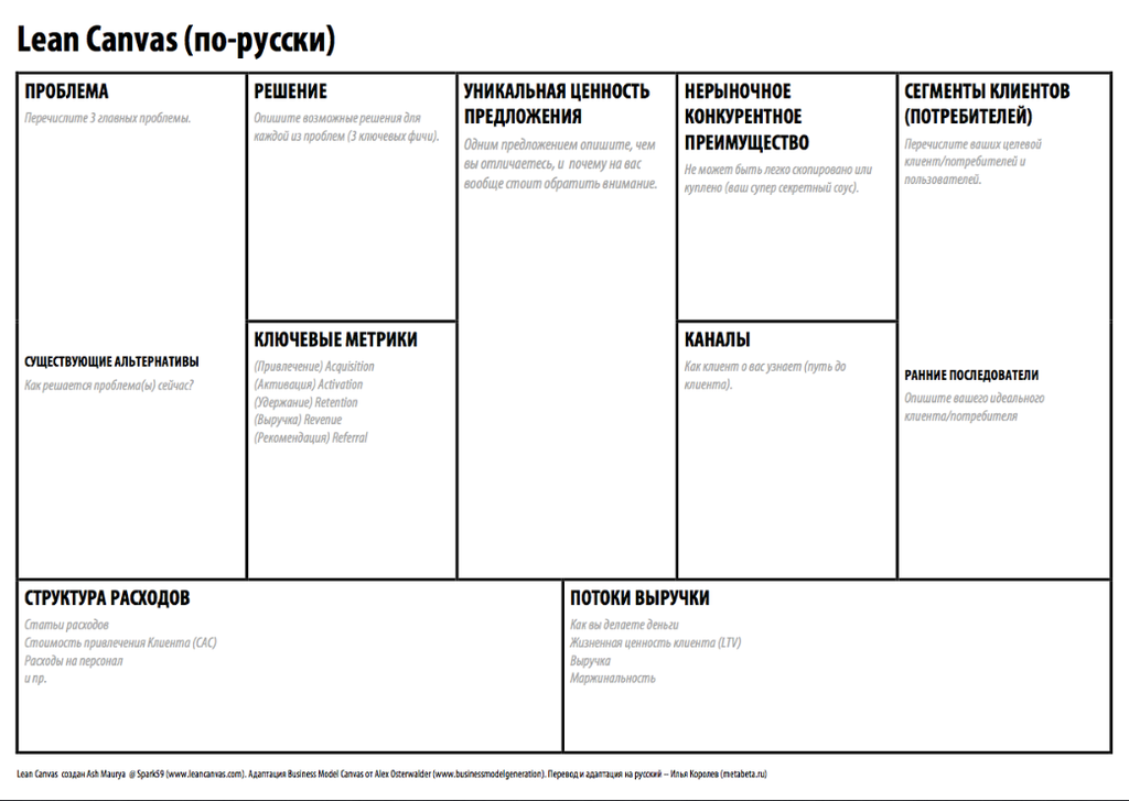 - Как создать A Lean Canvas. https://xtensio.com/how-to-create-a-lean-canvas/