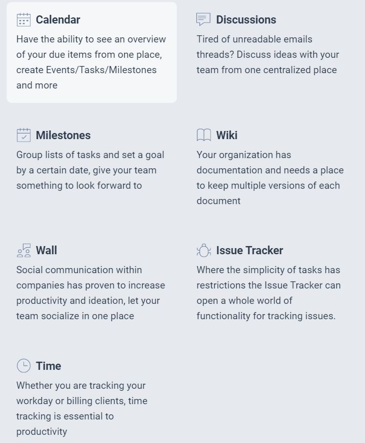 A nice variety of tools for an effective project flow