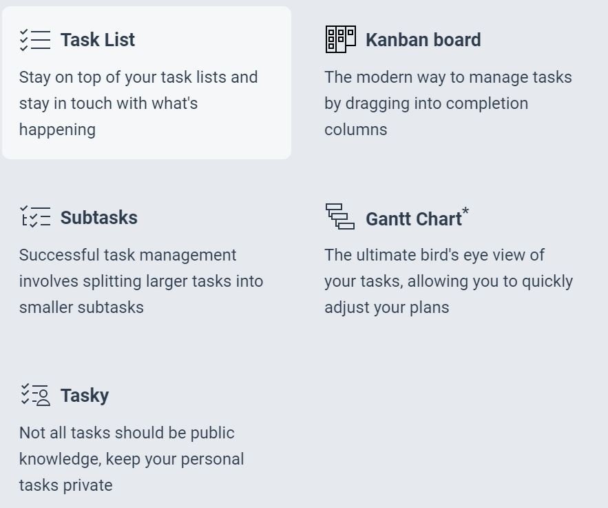 Freedcamp tells customer that they have “all the tools you need to be successful, in one place”. This is not far from the truth. Things get done with features such as task lists, subtasks lists, Kanban board and Gantt chart (Gantt is not available in the free version). And if you like, task lists or parts of them can be kept private for certain users. Important things are featured in your project homepage, from which it’s easy to navigate to different projects, and features of a certain project.