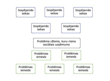 Lai saprastu kādu problēmu risina noteiktais sociālais uzņēmums, tiek ieteikts vizualizēt pašu problēmu, tās cēloņus un iespējamās sekas, kas vēlāk palīdzēs identificēt Pārmaiņu teorijas pīlārus (1. Pielikums, Problēmu matriks)