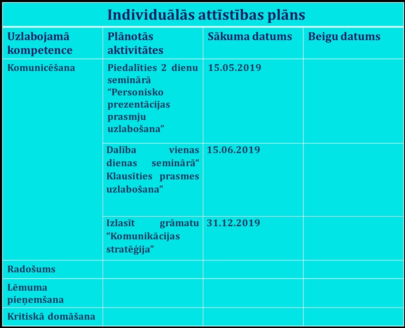 4.Personīgo prasmju pašnovērtējums un personīgās izaugsmes plāna izstrāde