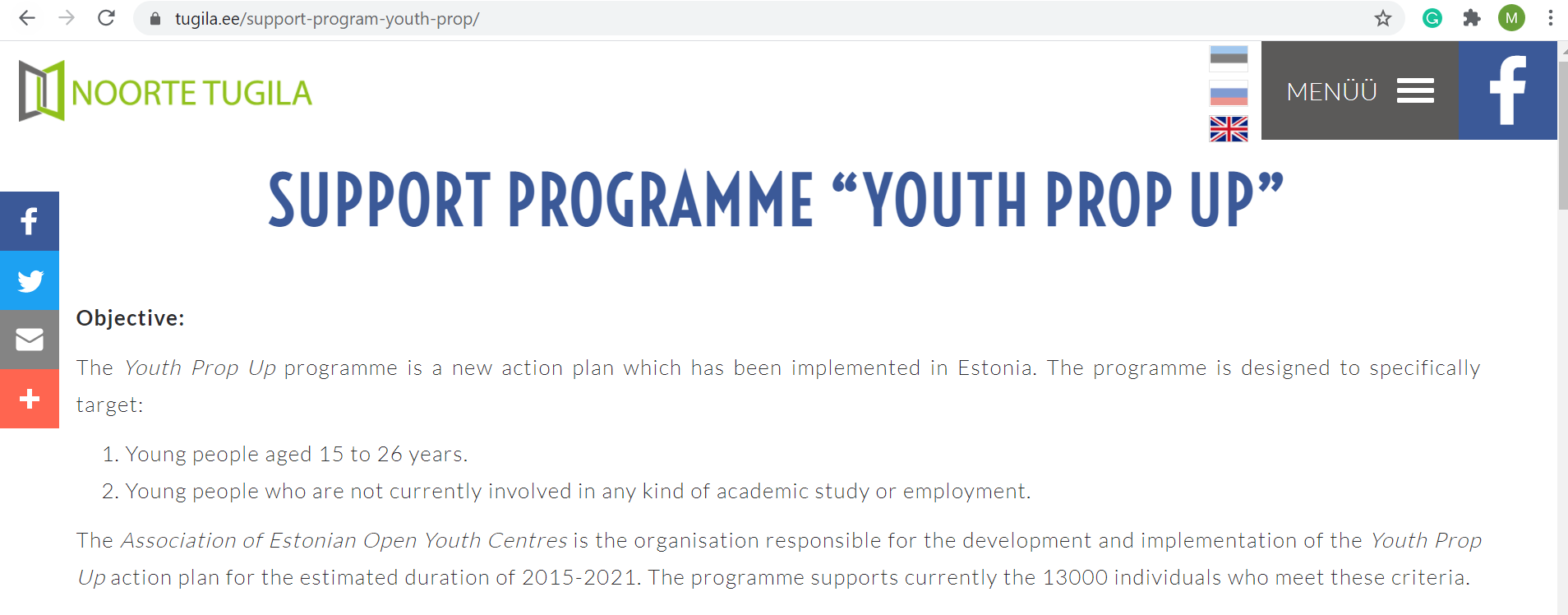 Blog | Educational Materials | English | Estonian | Learn | Russian | Support for SocEnts | Youth Do you know youth support programme “YOUTH PROP UP”?