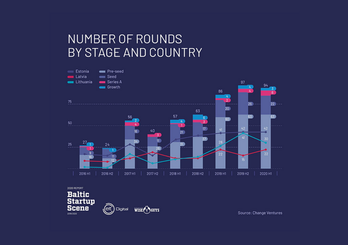 On the topic of VC, the revenue of Estonian startups totaled €562 million in the third quarter of 2020. According to Change Ventures, “Estonian startup round sizes and valuations continue to be larger than their compatriots in Latvia and Lithuania, reflecting a more mature funding ecosystem. The top quartile valuations for Estonian seed rounds actually exceed median US startup valuations, reflecting the massive growth in angel and super-angel investors in Estonia.” Crunchbase has further reported that Estonia is showing higher growth than usual, and that “Many point to Estonia’s early success with Skype as the catalyst for the country’s bubbling and uniquely successful startup culture, which has borne five unicorns. Pipedrive was the latest to join the ranks in November 2020.”