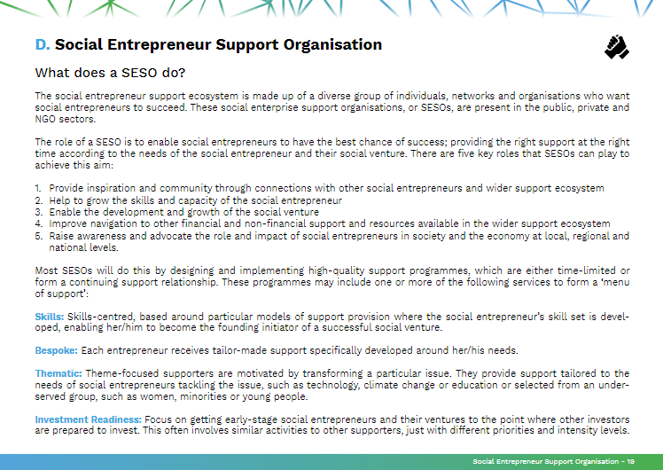This toolkit has been designed to assist organisations and individuals who work to help social entrepreneurs, from pre-start through to scaling social ventures. The toolkit can be used by anyone, though it is primarily aimed at those who are new to working with social entrepreneurs.